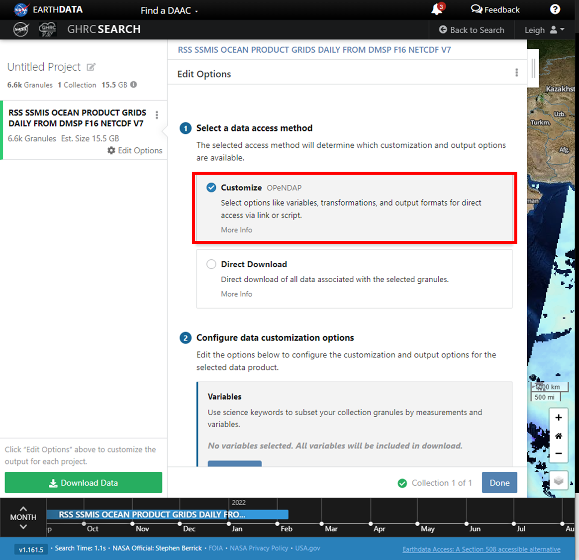 Earthdata Search is the powerful search and discovery application for NASA’s Earth Observing System Data and Information System (EOSDIS). Developed by NASA’s Earth Science Data and Information System (ESDIS) Project and hosted in the Earthdata Cloud, Earthdata Search pulls together a number of EOSDIS services: the Common Metadata Repository (CMR), Global Imagery Browse Services (GIBS), EOSDIS Distributed Active Archive Center (DAAC) services, Harmony, and Earthdata Login. Using CMR as a foundation, Earthdata Search enables sub-second searches through the nearly 50 petabytes (PB) of data in the EOSDIS collection.