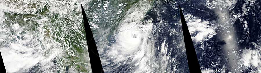 Image of Typhoon Nida approaching Hong Kong acquired on 1 August by the Moderate Resolution Imaging Spectroradiometer (MODIS) aboard the Aqua satellite.